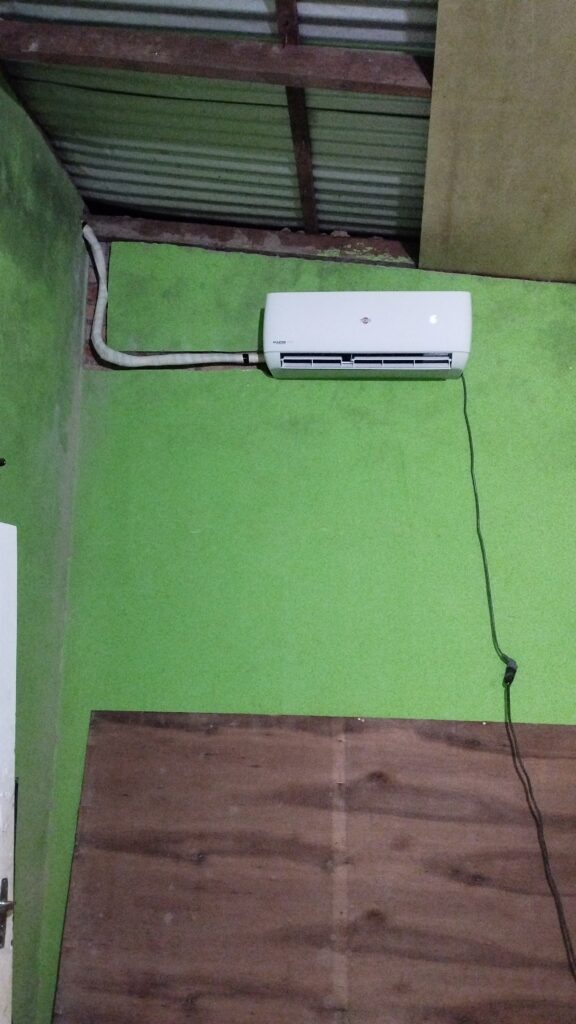 En esta ocasión el cliente quería la unidad exterior sobre el techo de la casa y la cañería embutida así que procedimos a instalarla.
